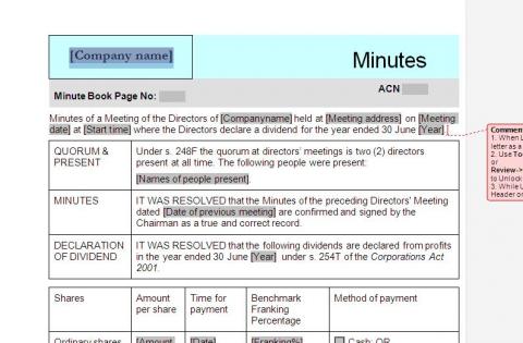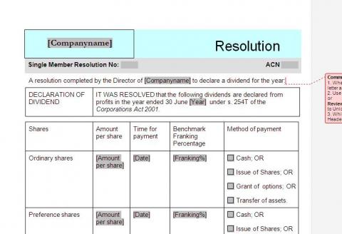 12 resolutions templates required for a sole director to run the company. (C-33866)
