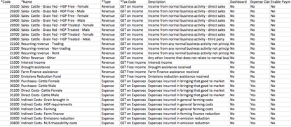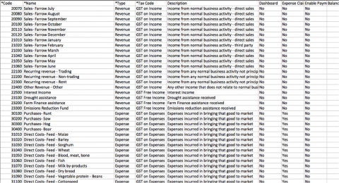 Chart of Accounts for a sole trader operating in agricultural Australia. (C-35740)